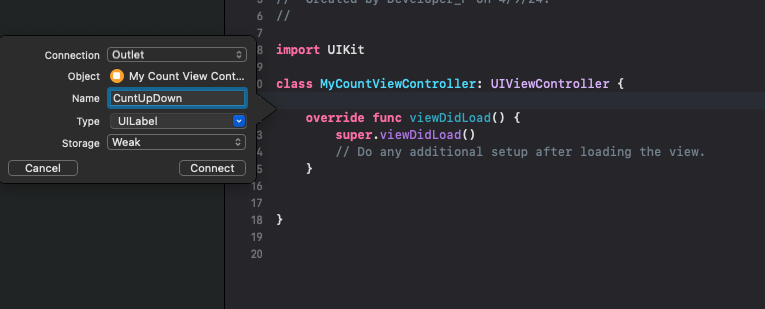@IBOutlet weak var cuntUpDown: UILabel!