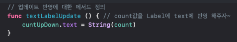 func textLabelUpdate () { // count값을 Label에 text에 반영 해주자~