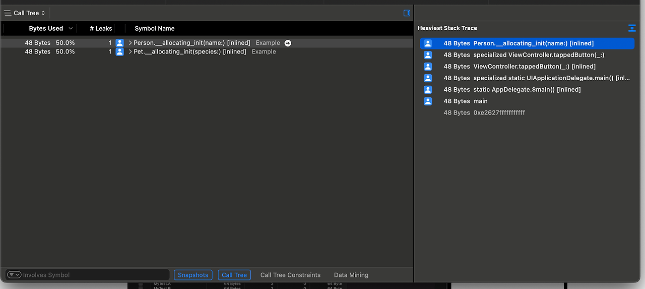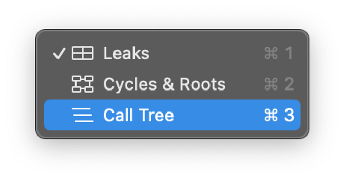 Leaks을 클릭해 Call Tree를 선택