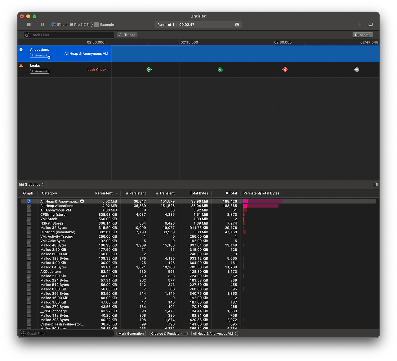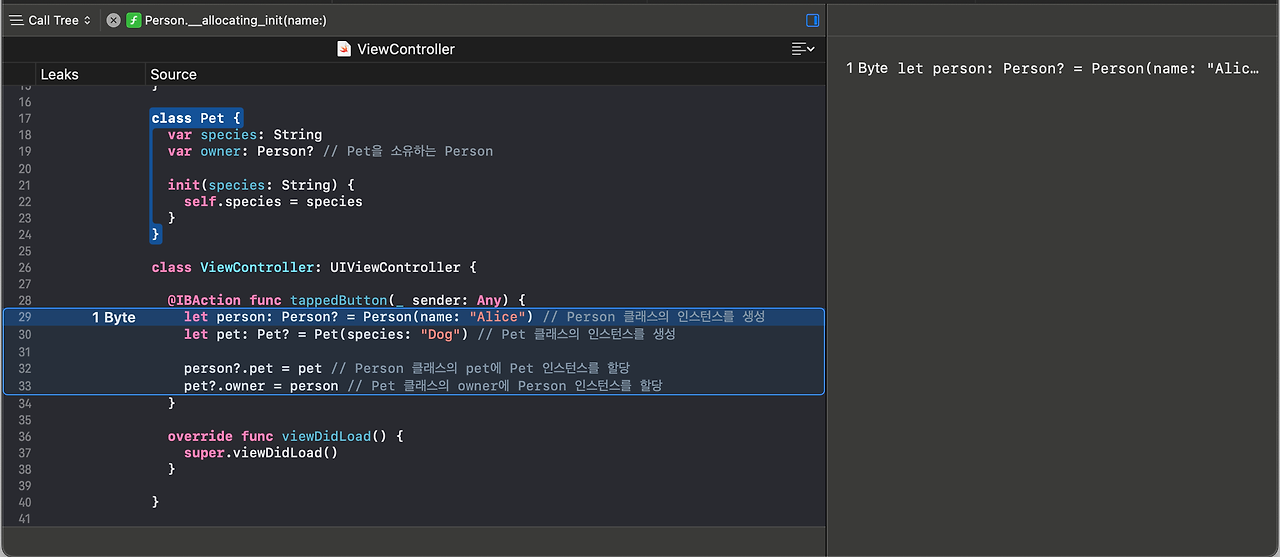 “Leaks”을 사용해서 메모리 누수를 찾는 방법
