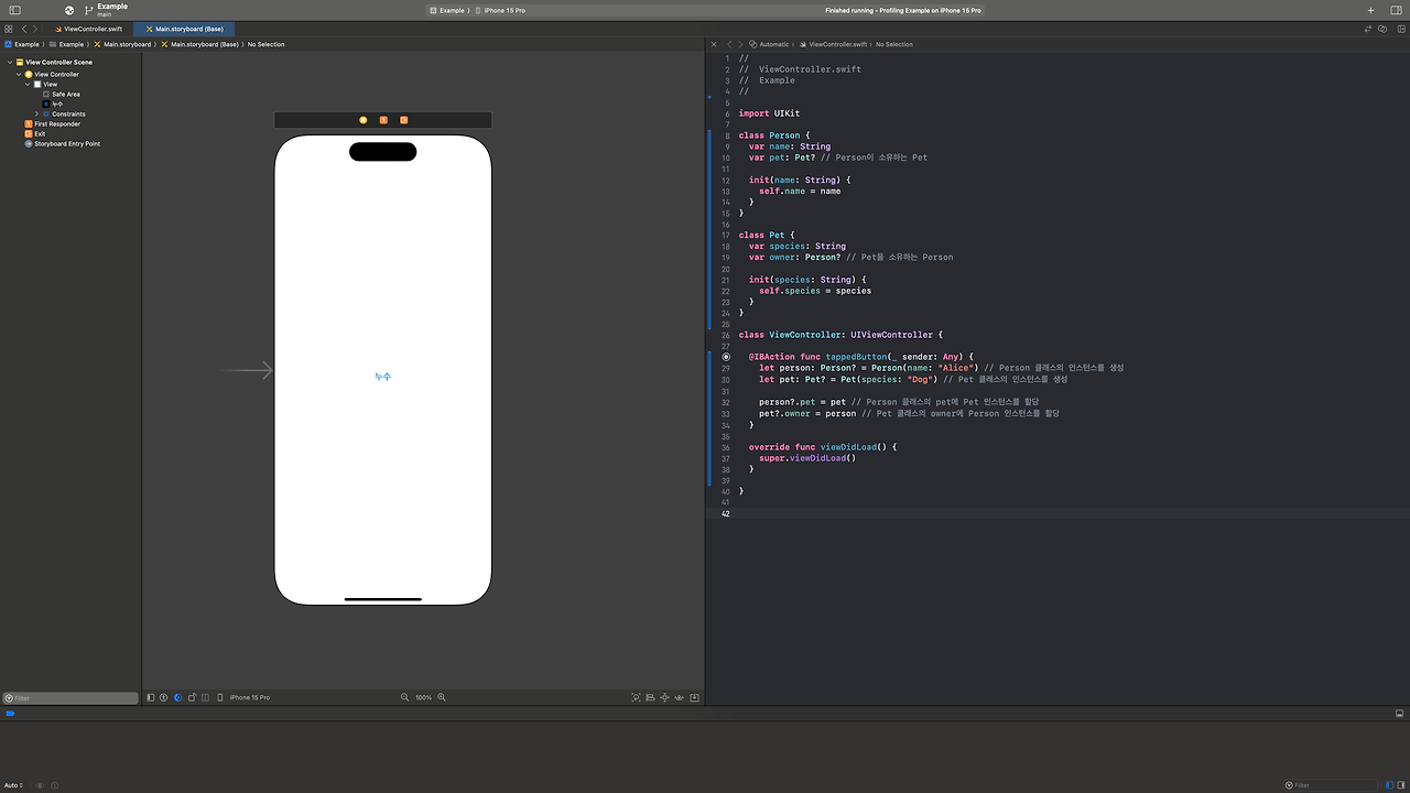 pet?.owner = person // Pet 클래스의 owner에 Person 인스턴스를 할당