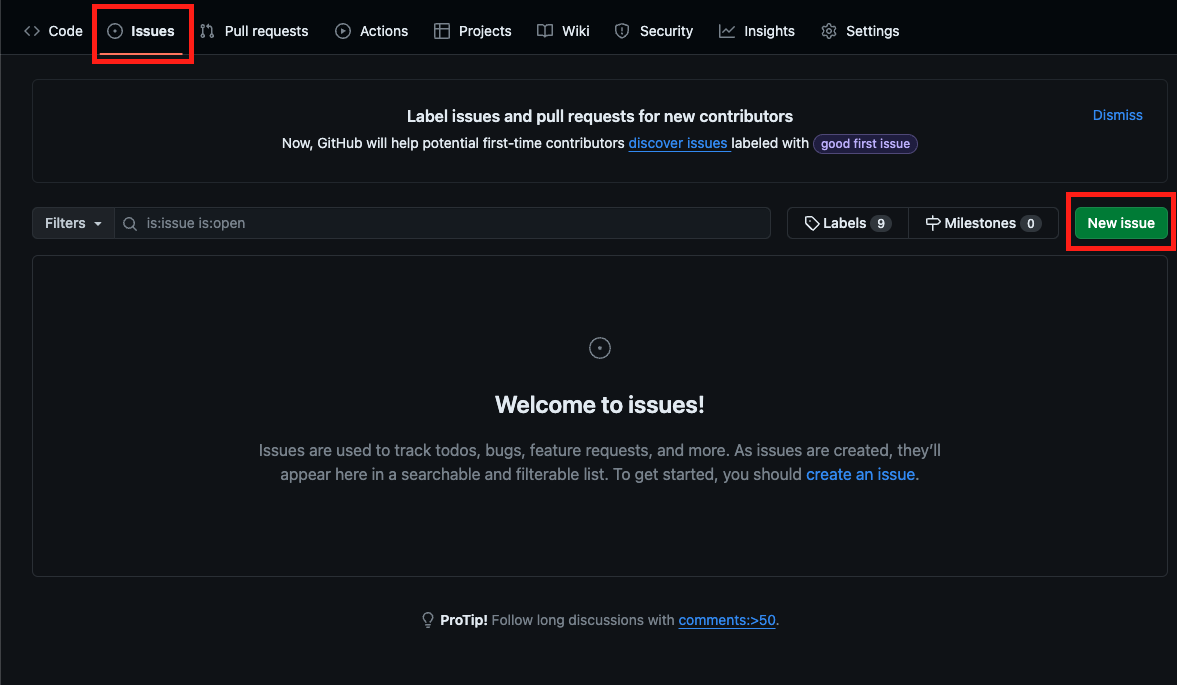 1 - 1 issue안에서 New issue를 클릭해줍니다.