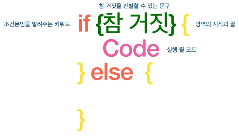 거짓일 때는 else 다음의 {} 사이를 실행한다.