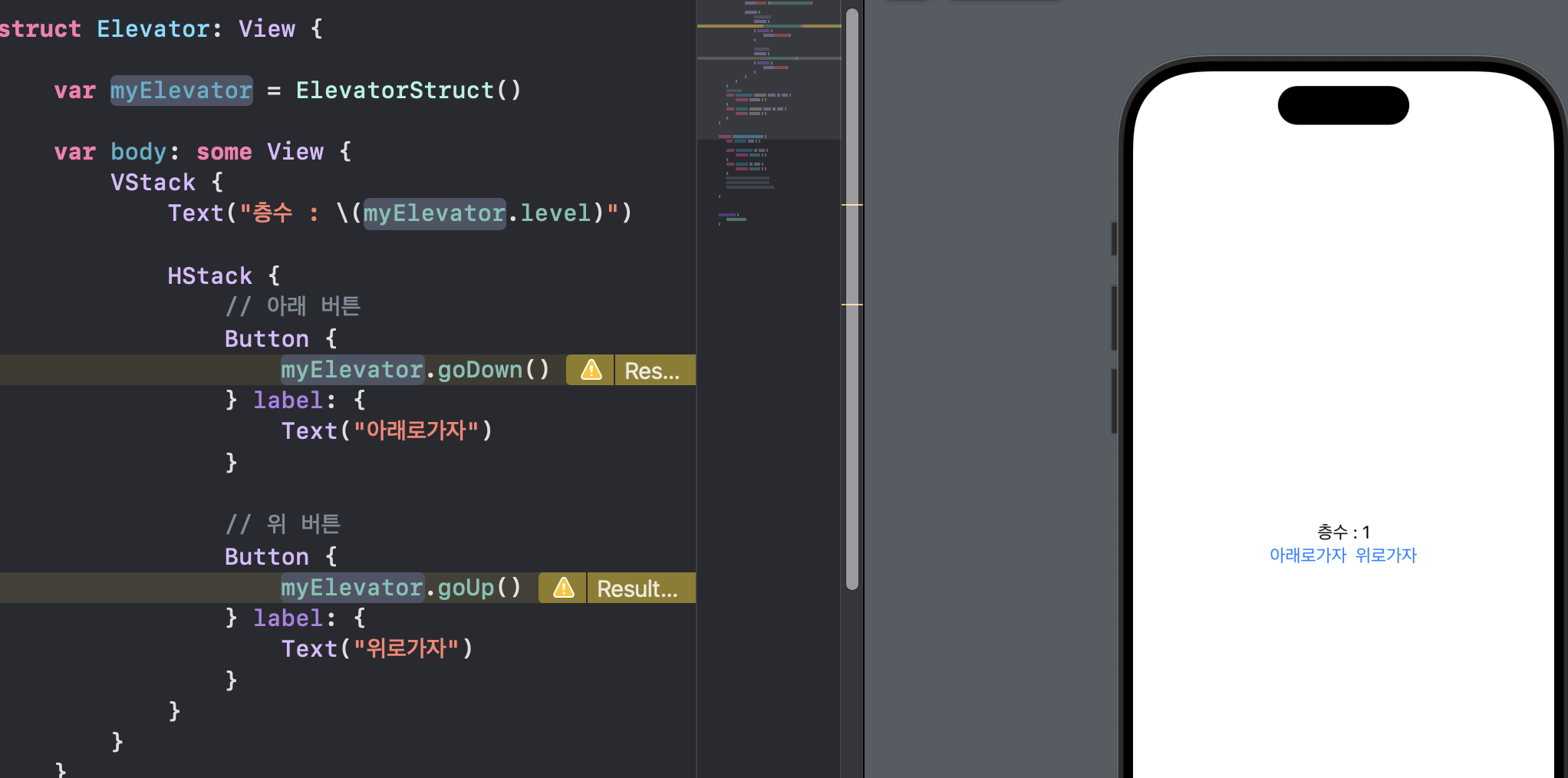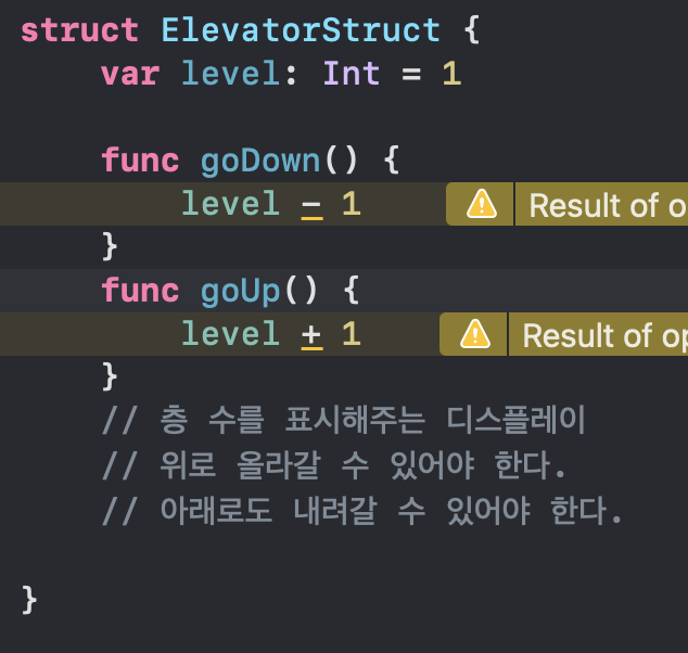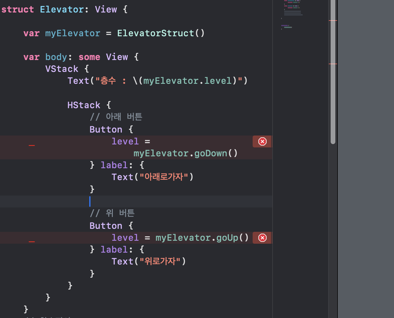 위쪽에 "var myElevator = ElevatorStruct()"를 해준다.