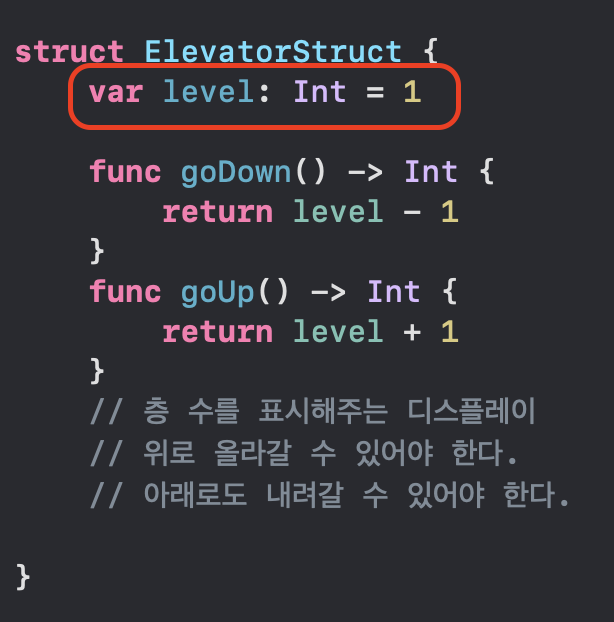 "var level: Int = 1" 일단 이렇게 만들어주고,
