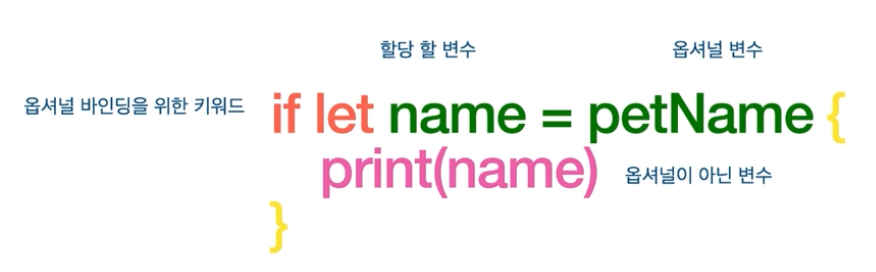 "if let"은 옵셔널 바인딩을 위한 구문이다.