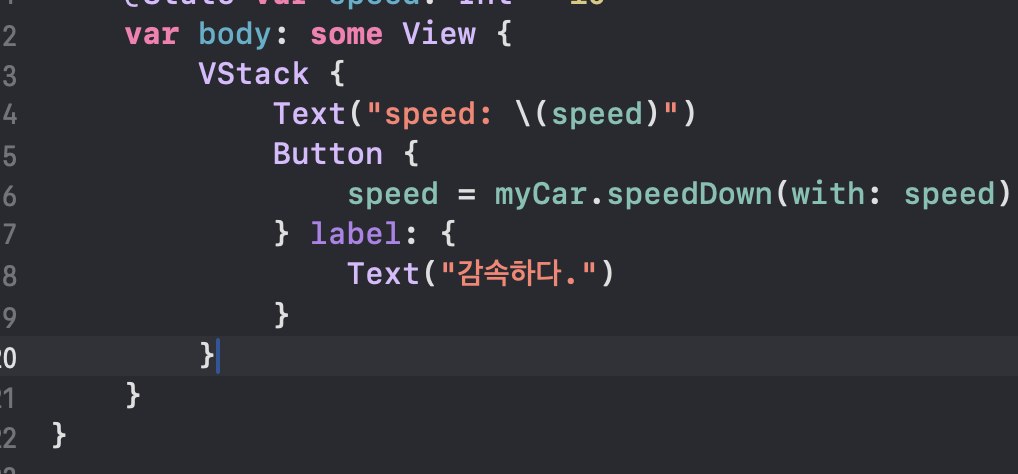 myCar는 speedDown(with: 3)
