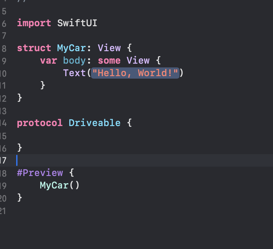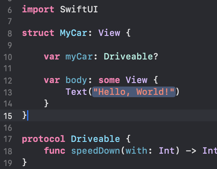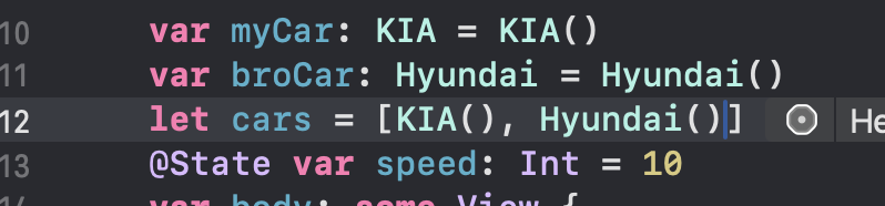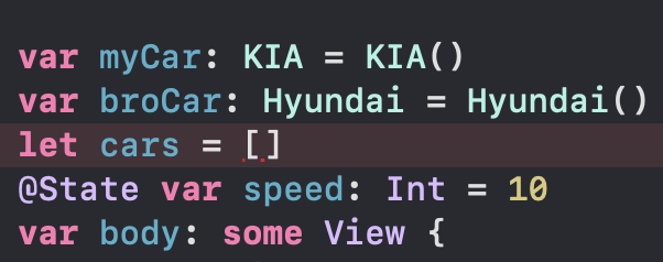 var myCar 필자의 차는 Driveable 한다.