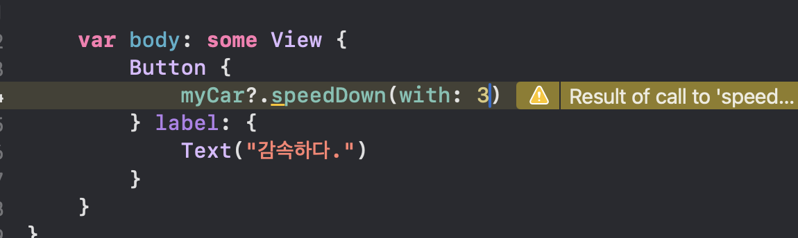 myCar는 speedDown(with: 3) 있는데,