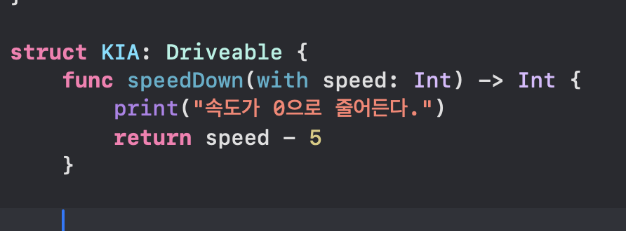 Driveable이 speedDown을 이처럼 해줄꺼다 만 정의가 되어 있으면,