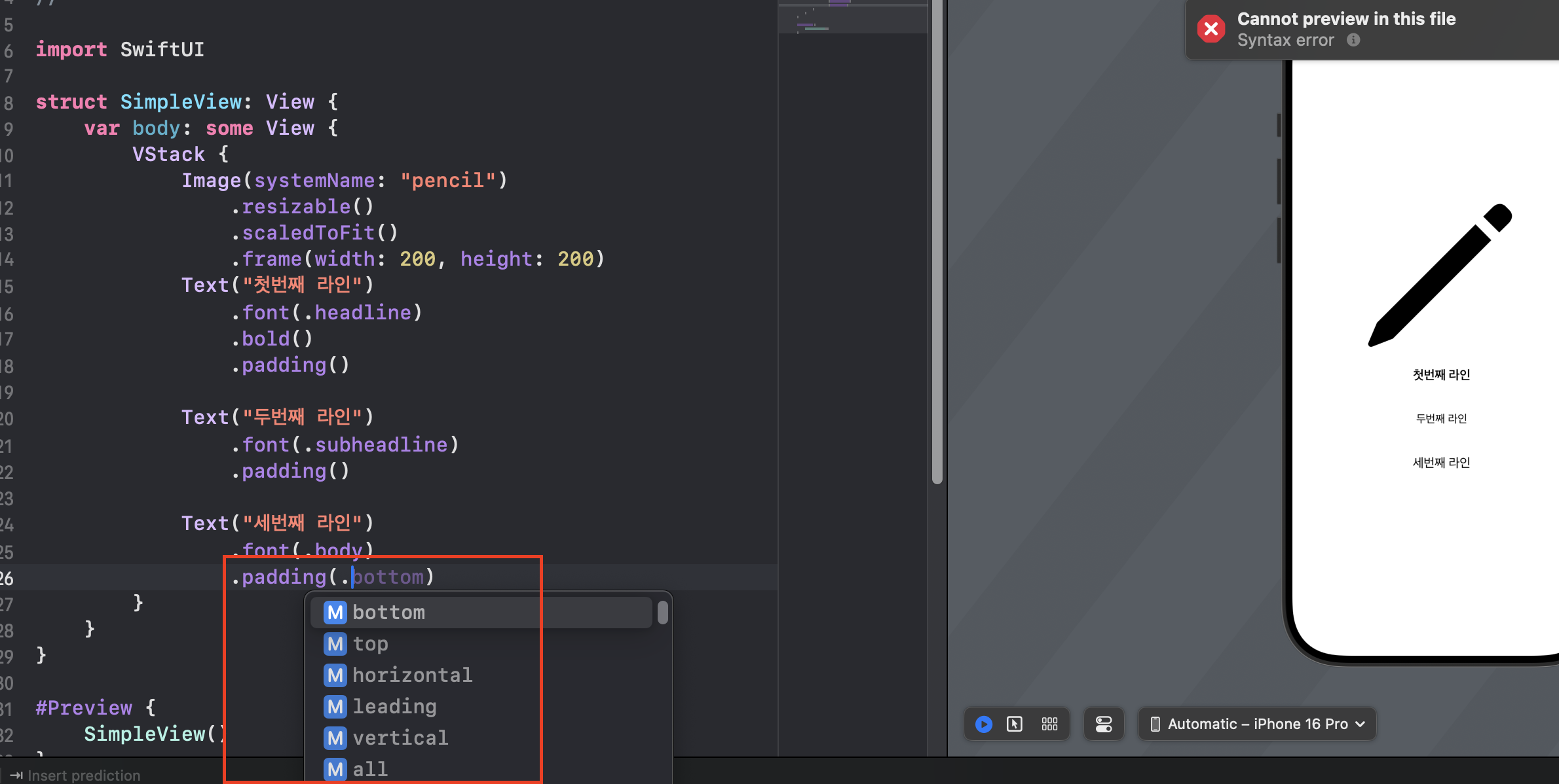 | [Swift-TIL] 간단하게 화면 하나 그려보기 (0) | 2024.11.18 |