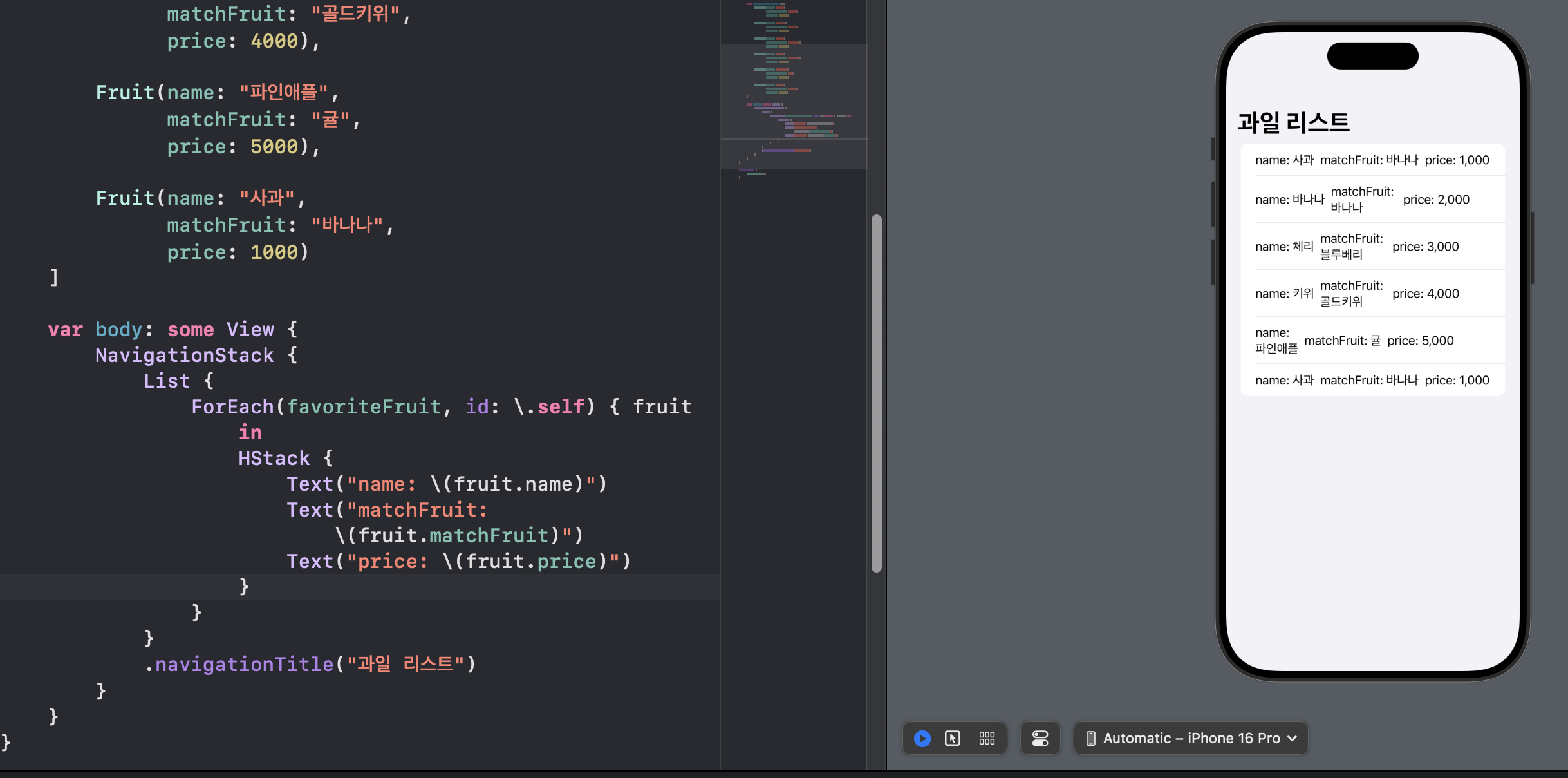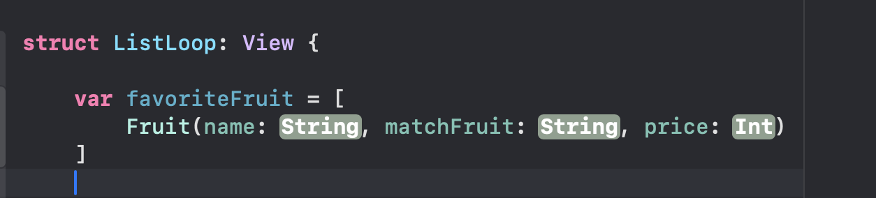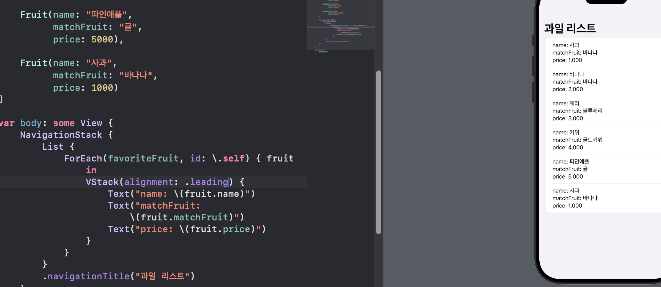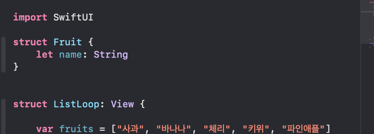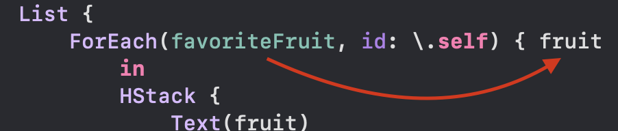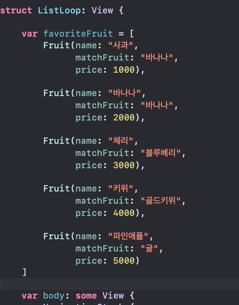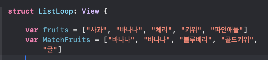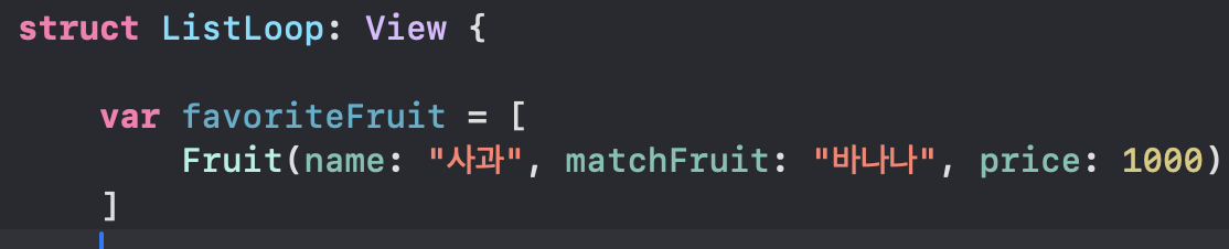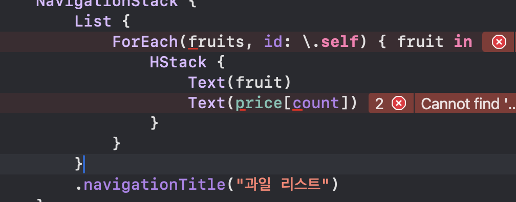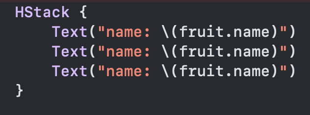 현재 HStack에 텍스트로 fruit 하면