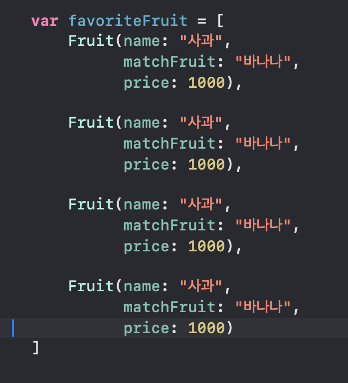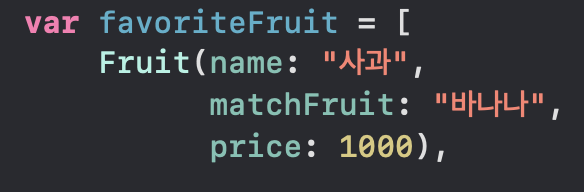 맨 처음 부분이 favoriteFruit 로