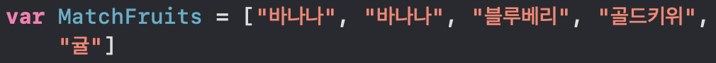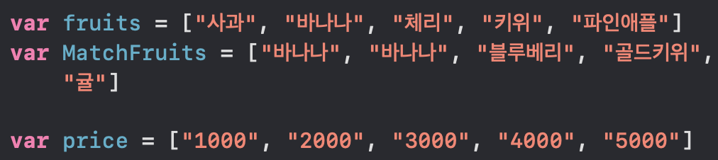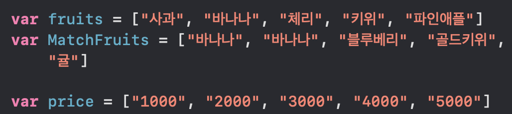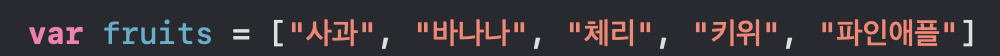 var fruits 안에 사과, 바나나 등등