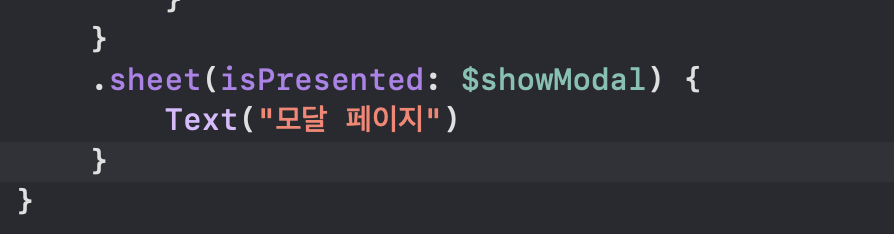 "isPresented"는 "$showModal"