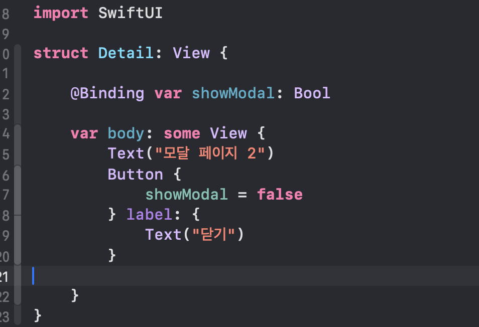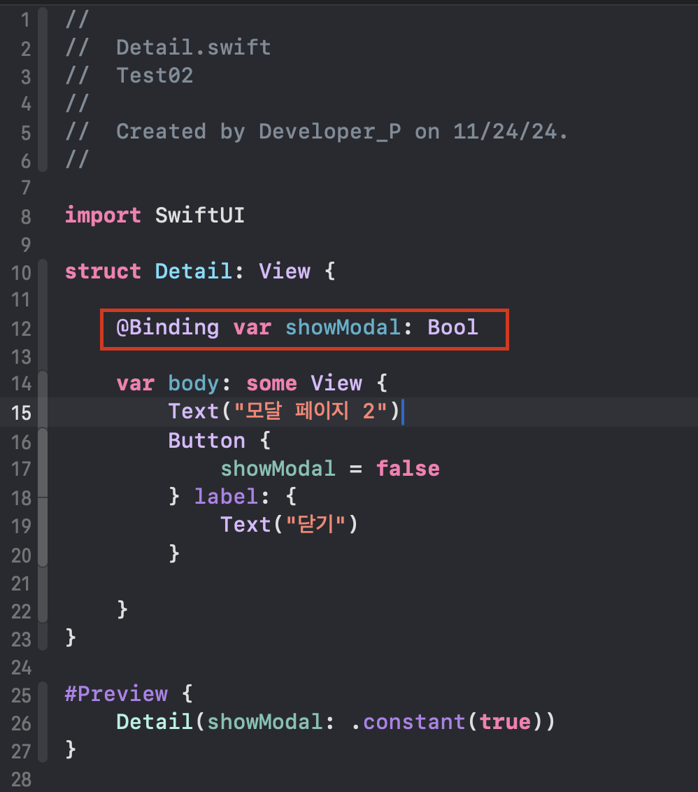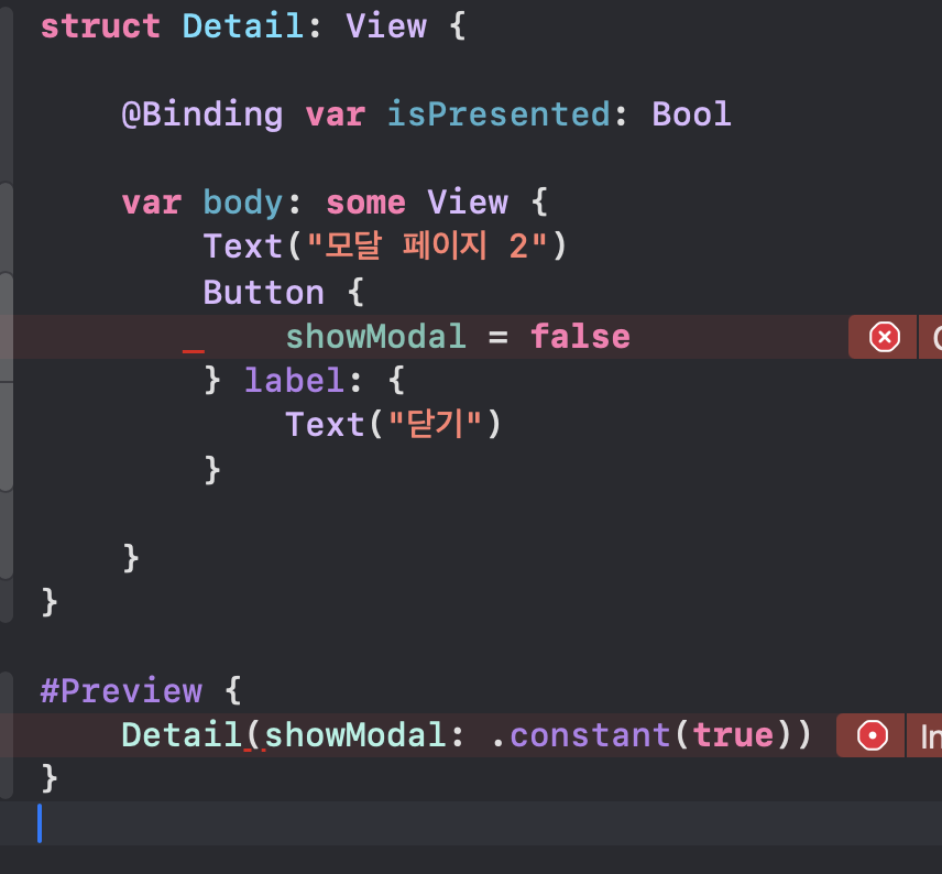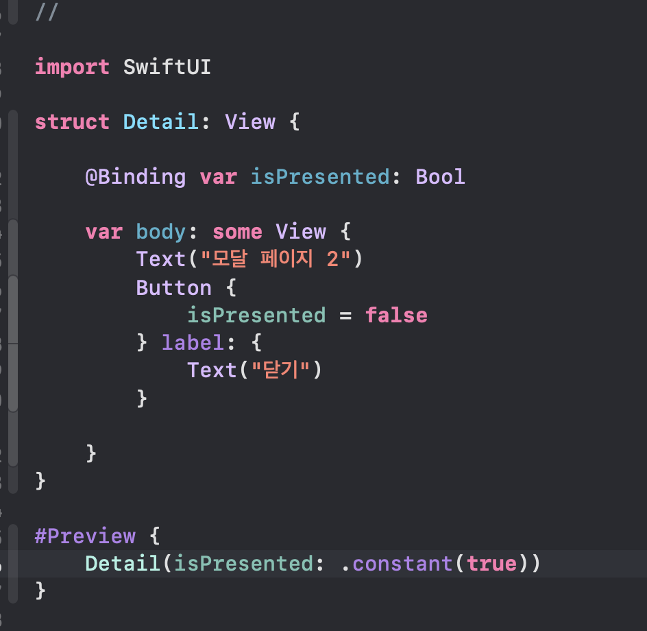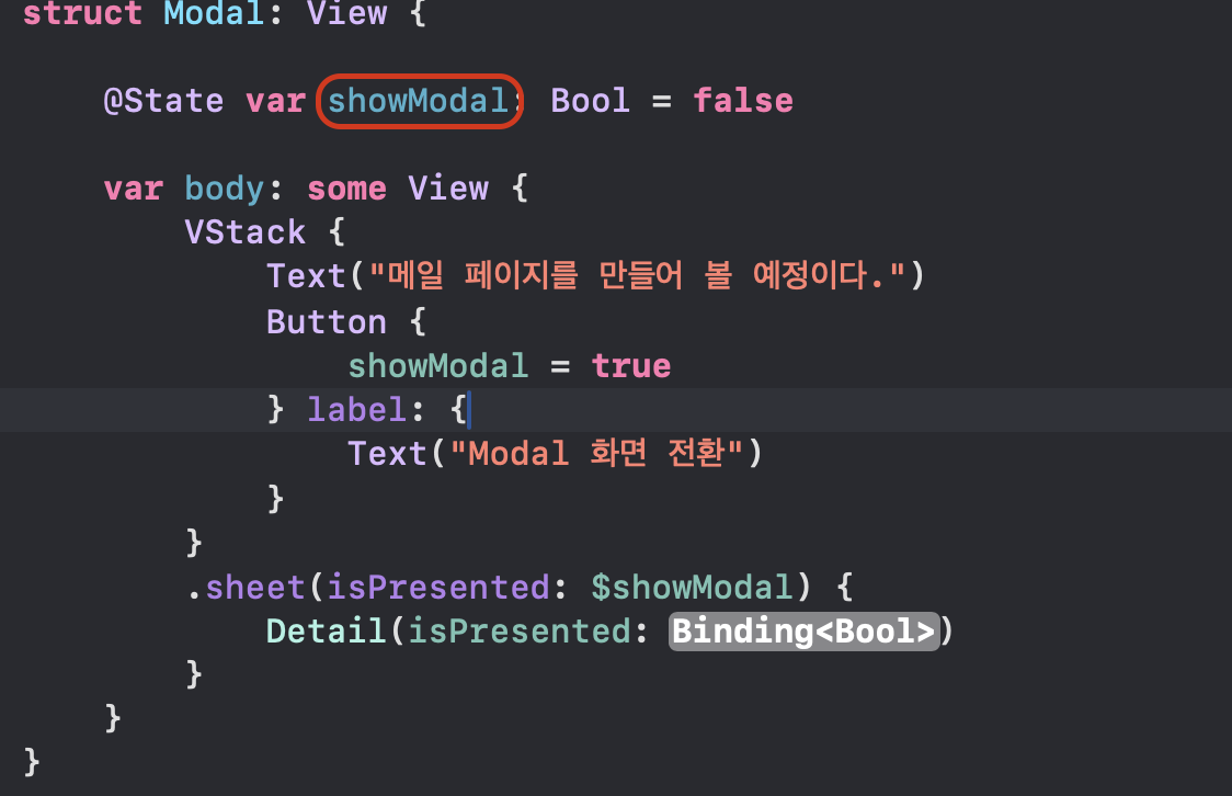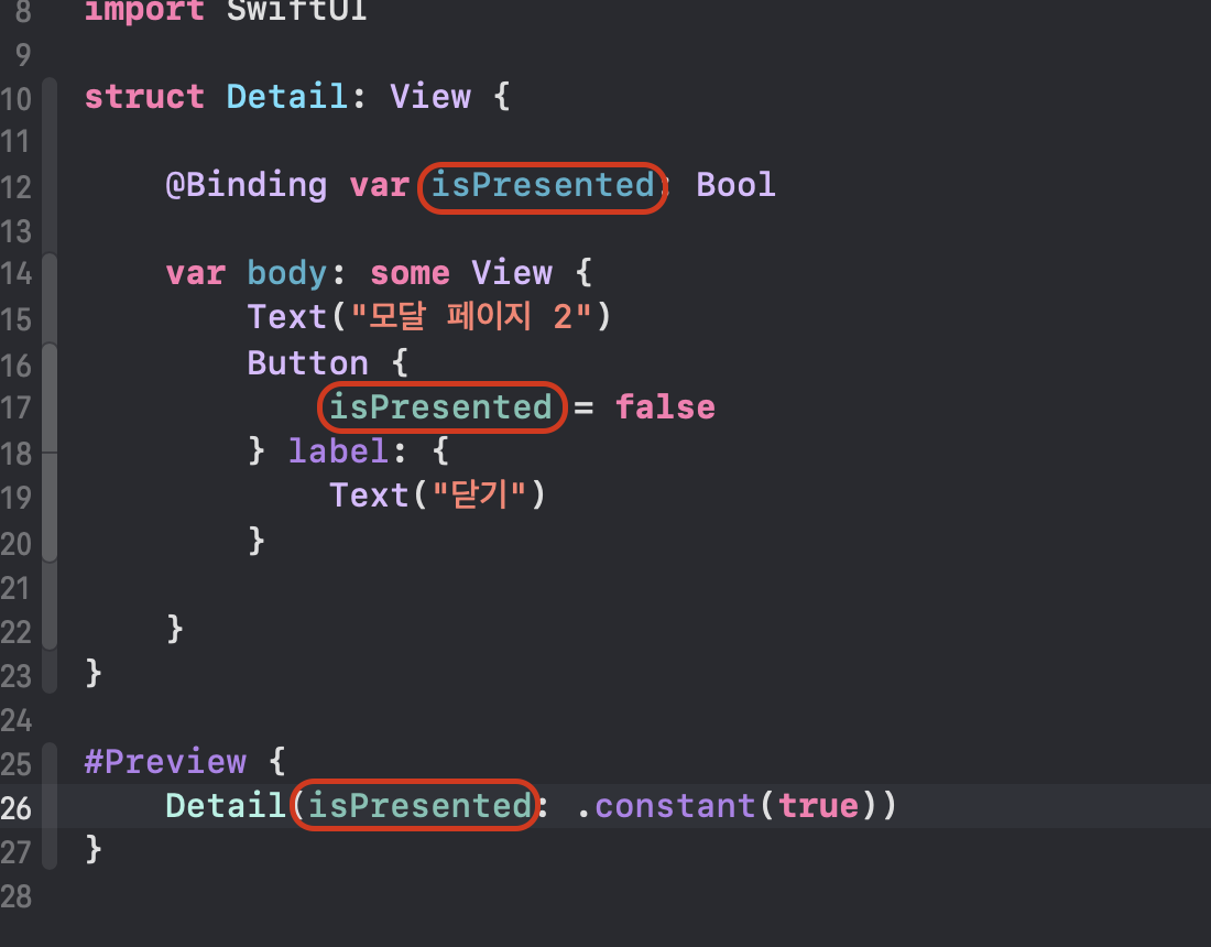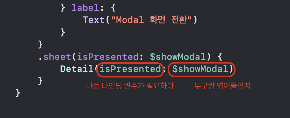 그리고 "isPresented" 얘는 바인딩 변수다.