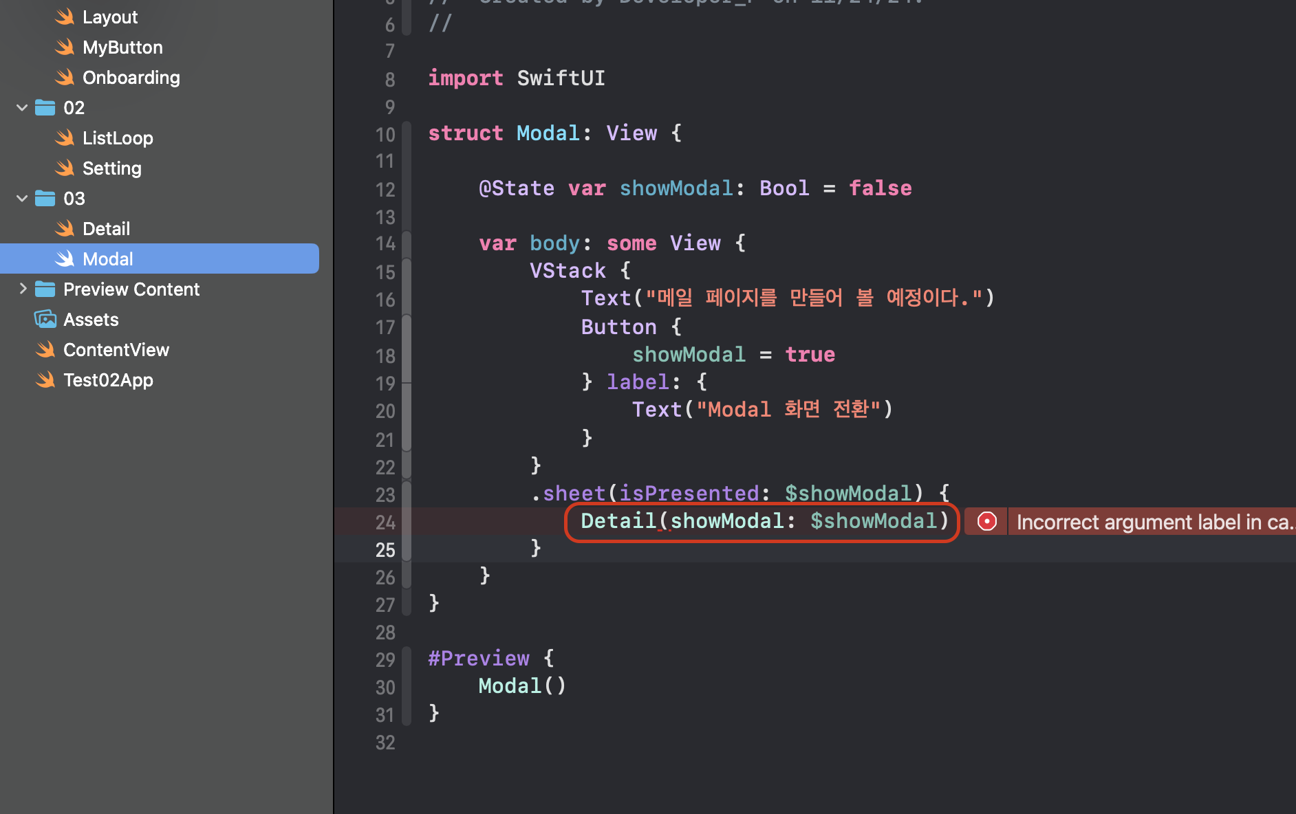 | [Swift-TIL] 리스트의 추가 및 삭제 (State&Binding) (실습편) (0) | 2024.11.21 |