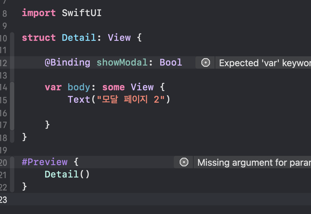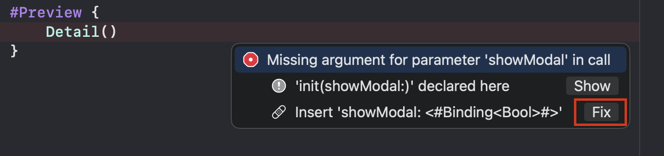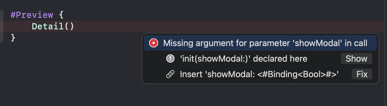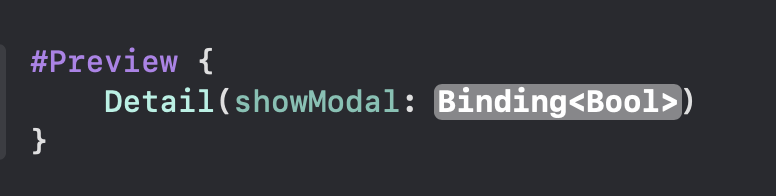 Detail(showModal: <#Binding<Bool>#>)