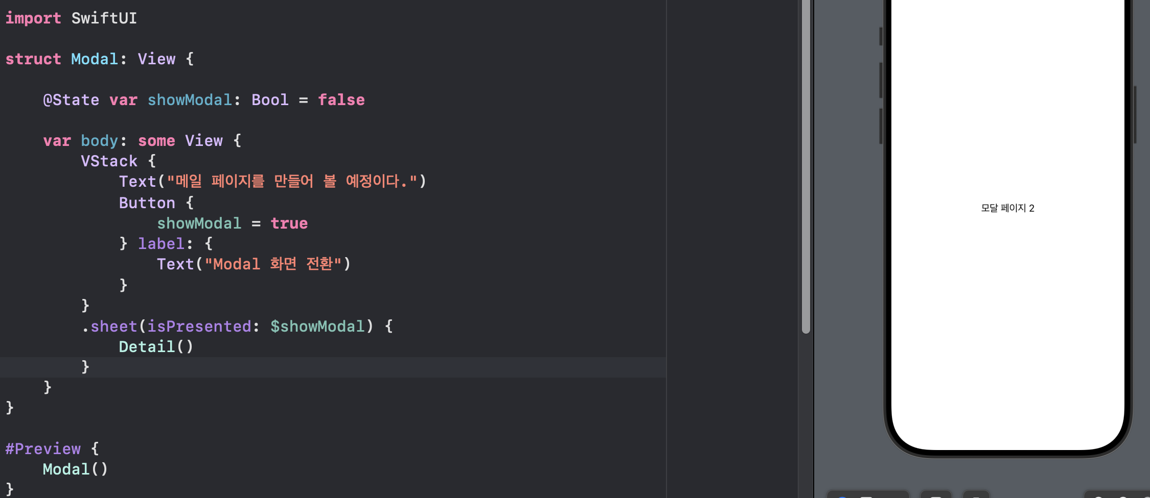 그렇다면 이제 모달 화면에서