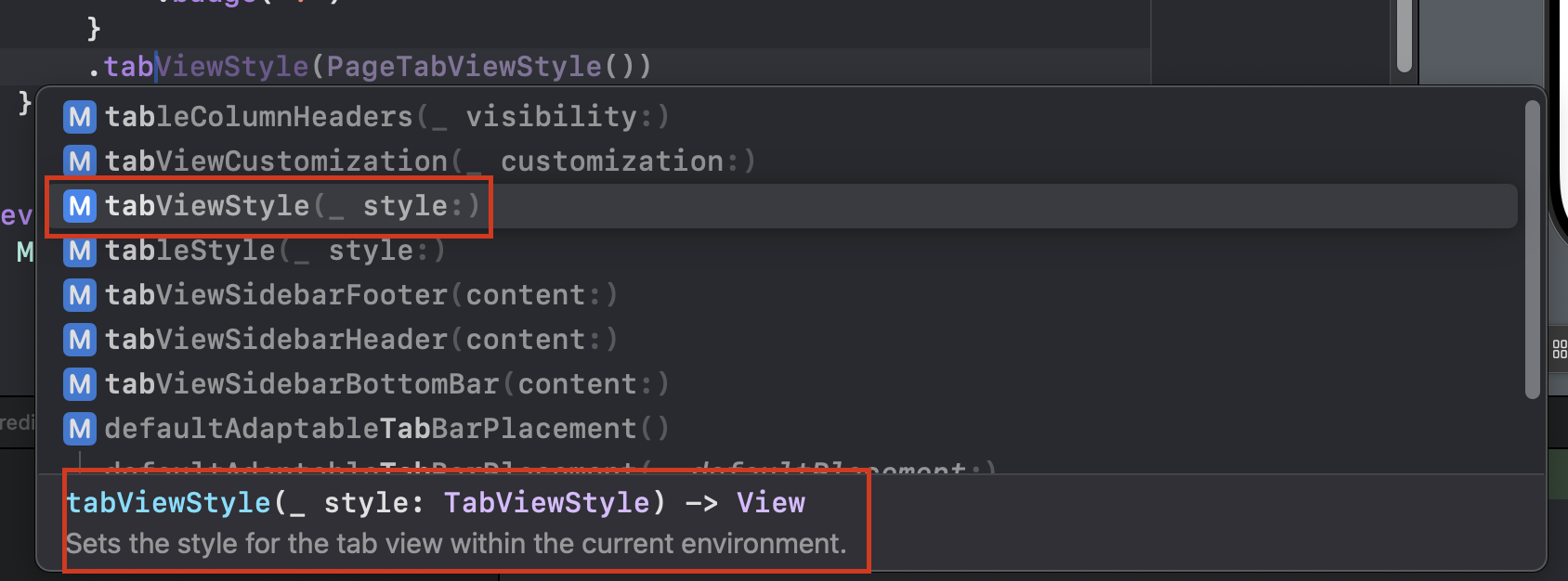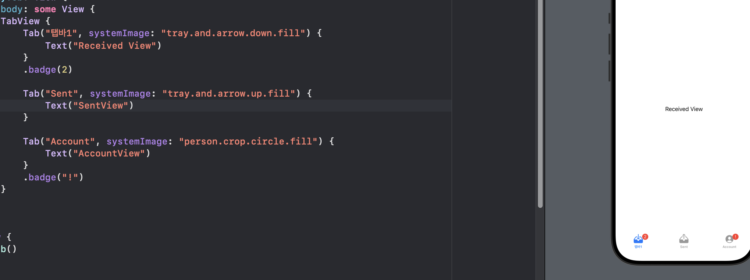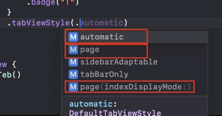 원래는 .tabItem을 붙여서 진행했다면,