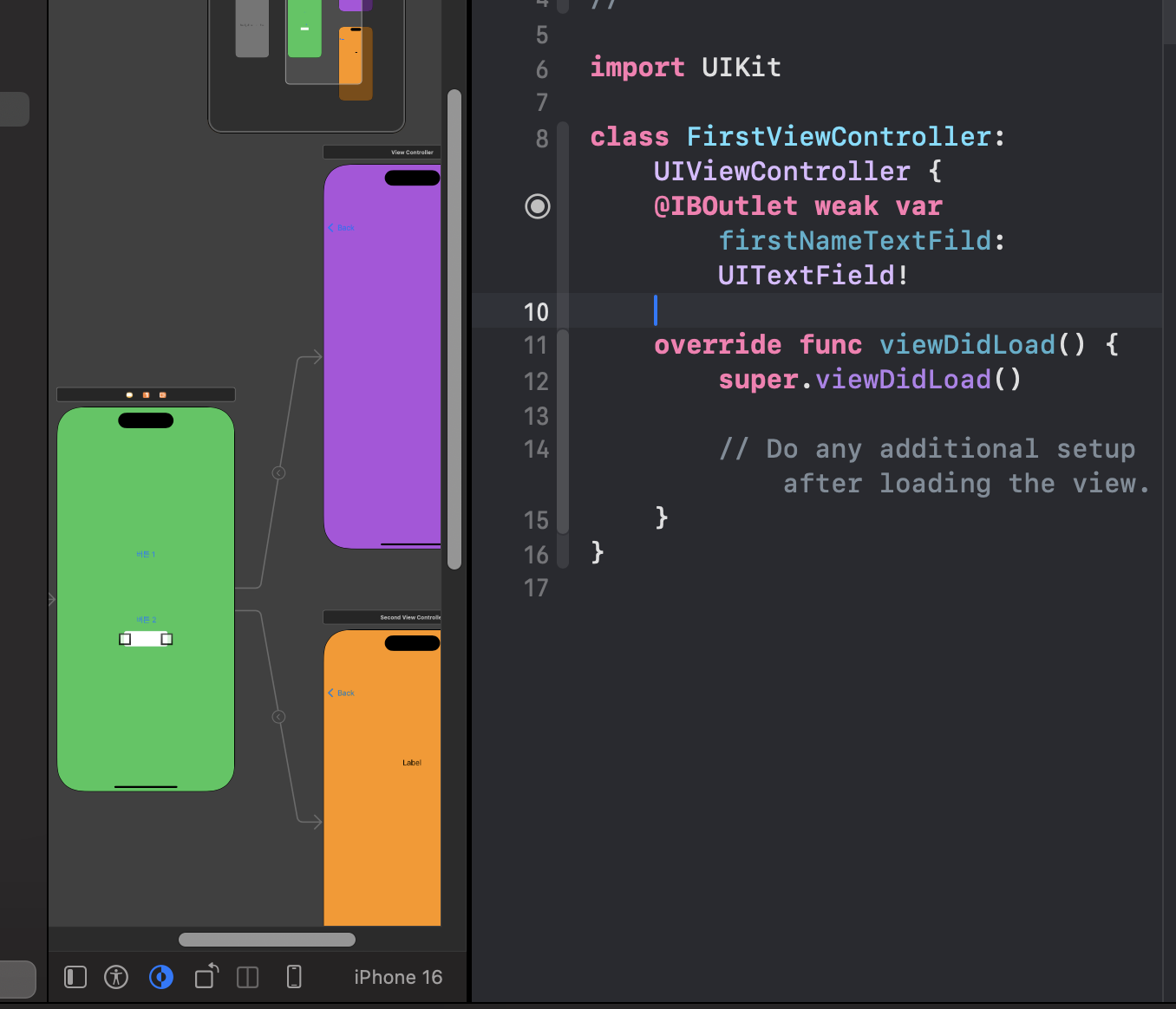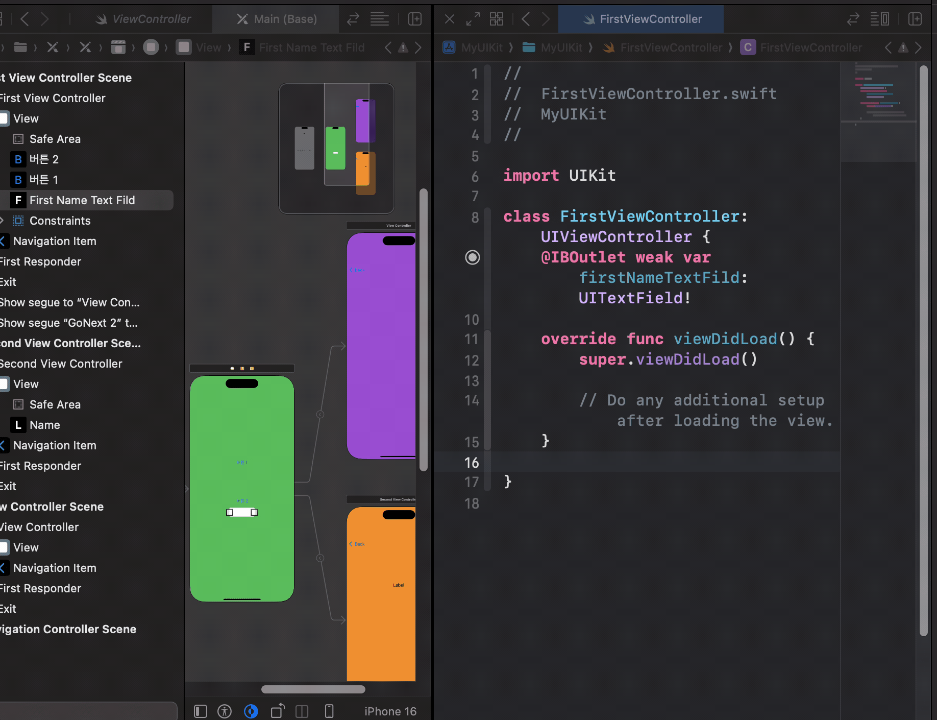 다시 FirstViewController로 돌아와서