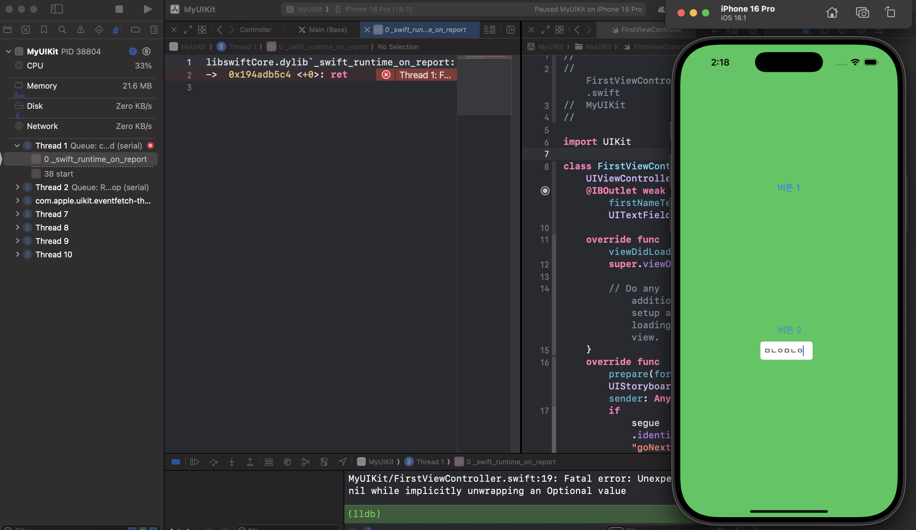 viewDidLoad 가 그려지기 전에 입력을 받았기 때문이다.