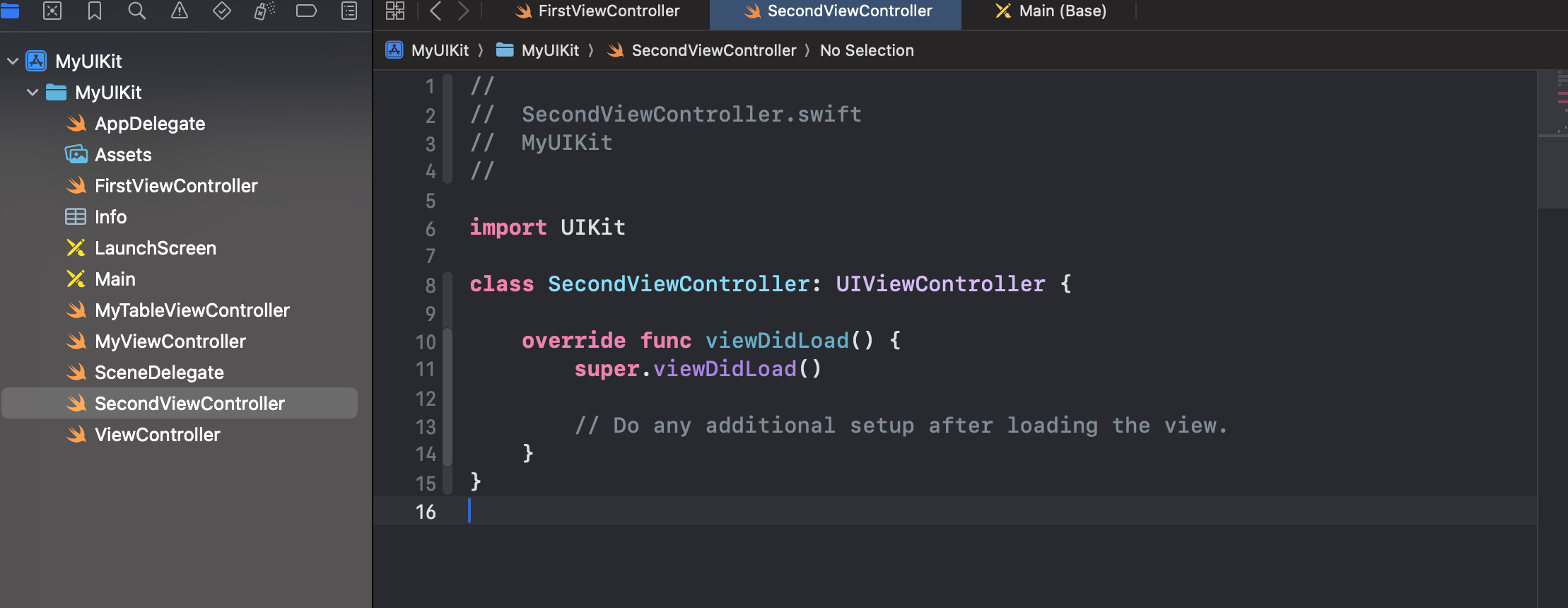 SecondViewController도 정의해주자.