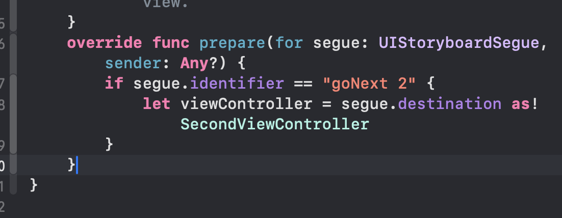 위에서 목적지가 SecondViewController 라고 정의 해줬으니