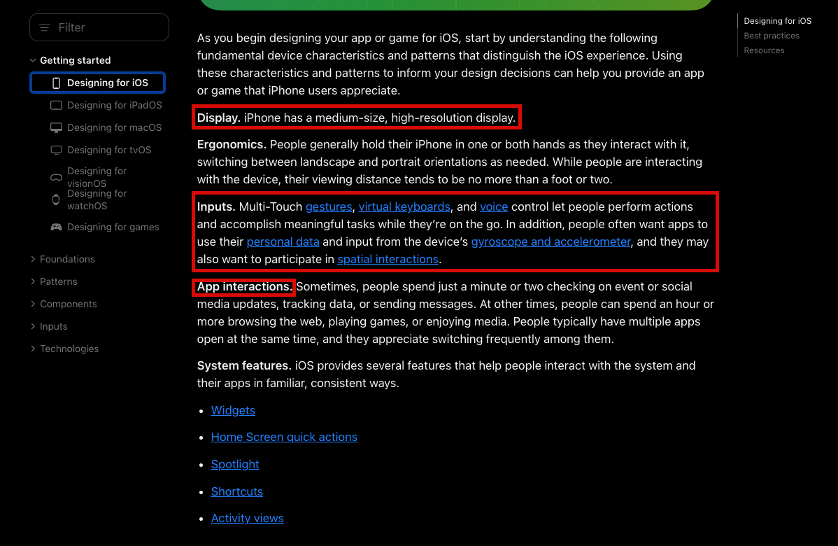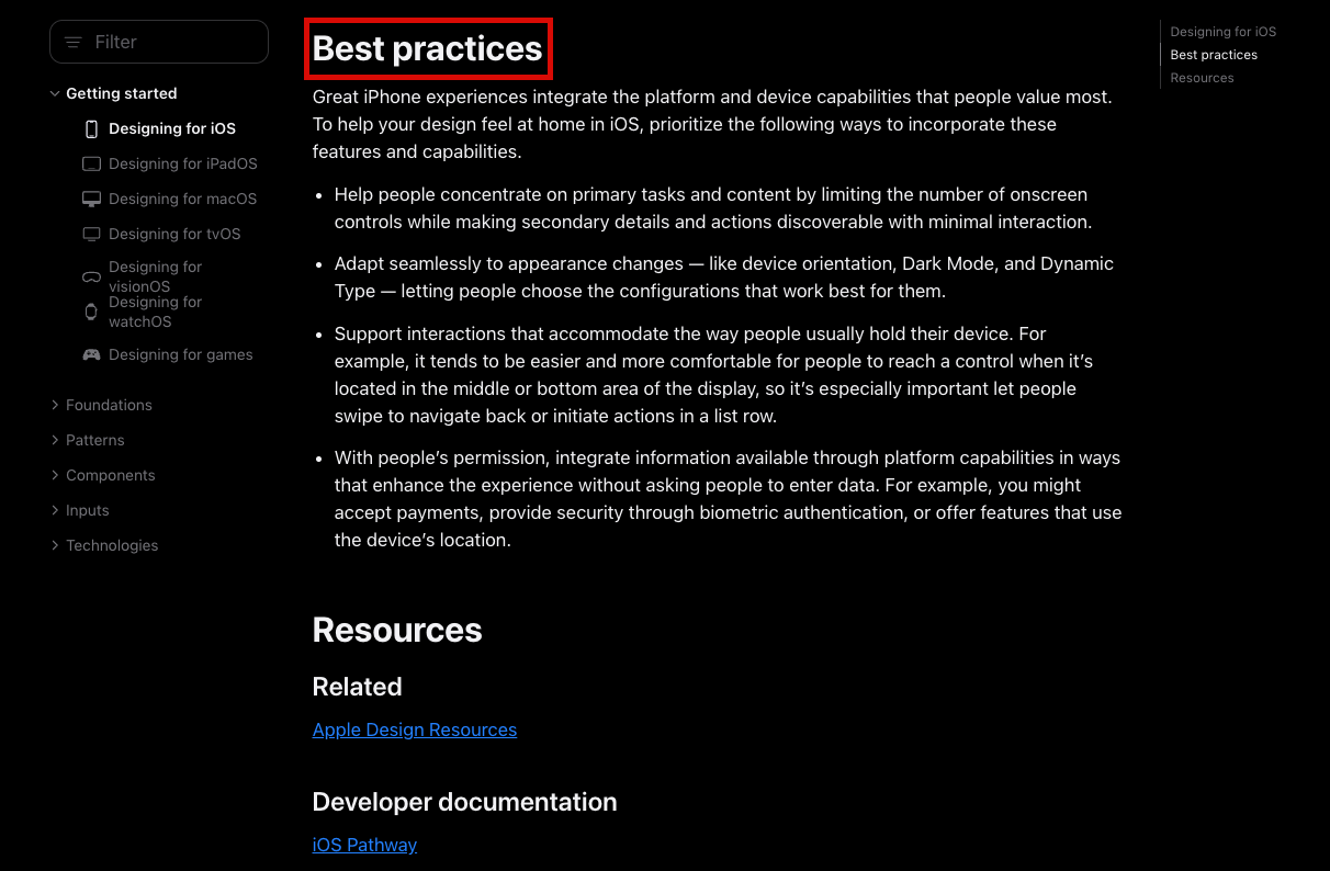 HIG는 모든 Apple 플랫폼에서 탁월한 경험을 제공할 수 있도록 도움을 주는 지침과 모범 사례를 포함합니다.