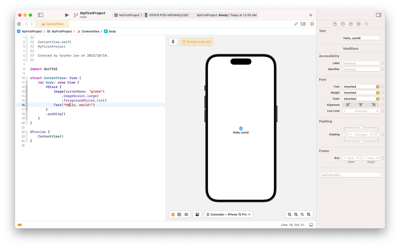 | [Xcode] Interface Builder 간단소개 (2) | 2024.02.24 |