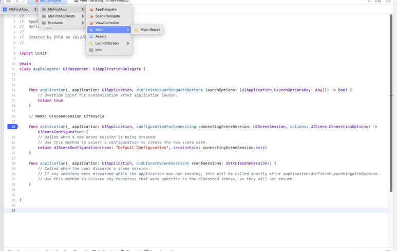 프로젝트를 실행하거나 생성된 프로젝트를 실행하면 Xcode는