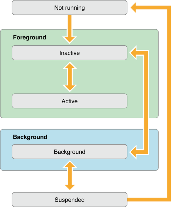 앱이 "Background" 상태에 있지만, 아무 코드도 실행하지 않는 상태