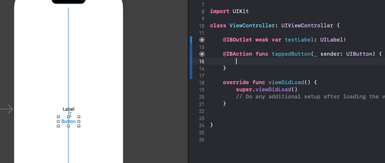 @IBAction 을 사용 -> UIButton ↔ Code 연결